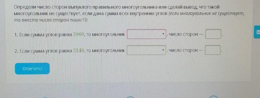 Определи число сторон выпуклого правильного многоугольника или сделай вывод... ​