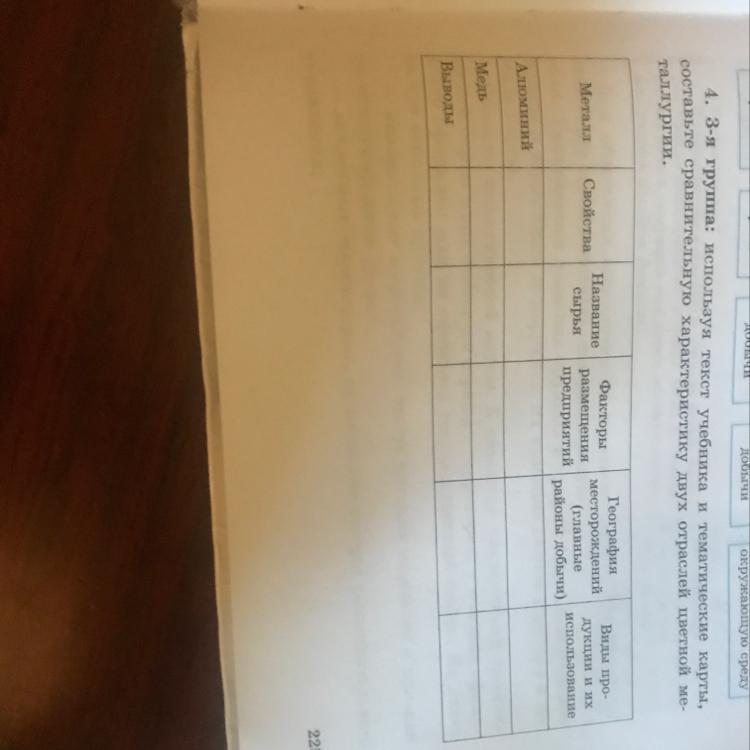 4. 3 -я группа : используя текст учебника и тематические карты , составьте сравнительную характеристику двух отраслей цветной ме таллургии.