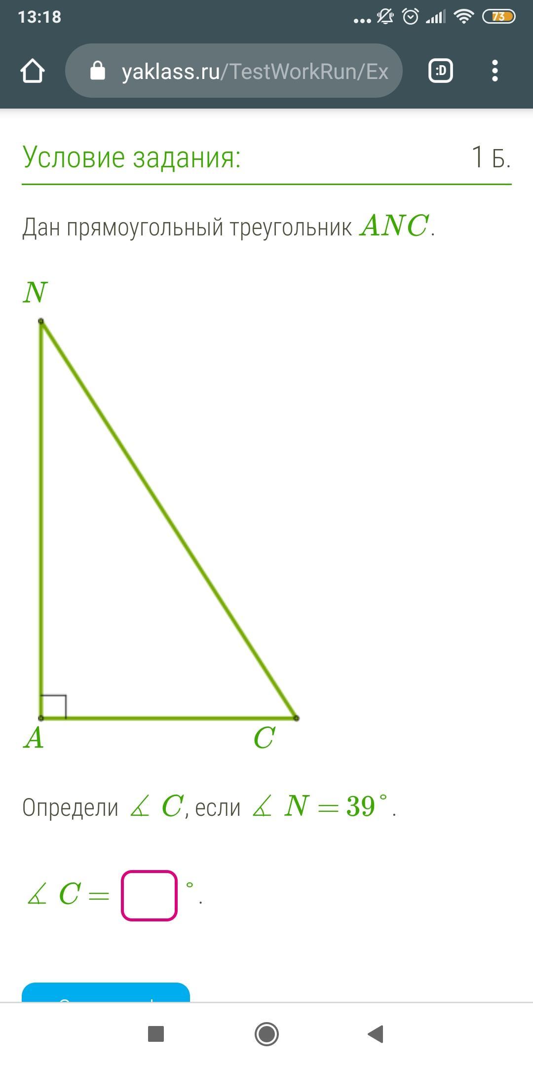 Так как на рисунке отмечено то что угол A= 90 гр а угол N= 39 гр
