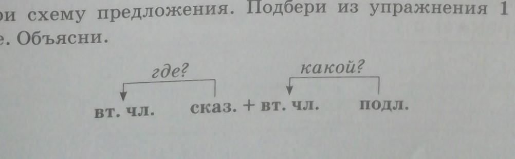 2. Рассмотри схему предложения. Подбери из упражнения 1 предложение
