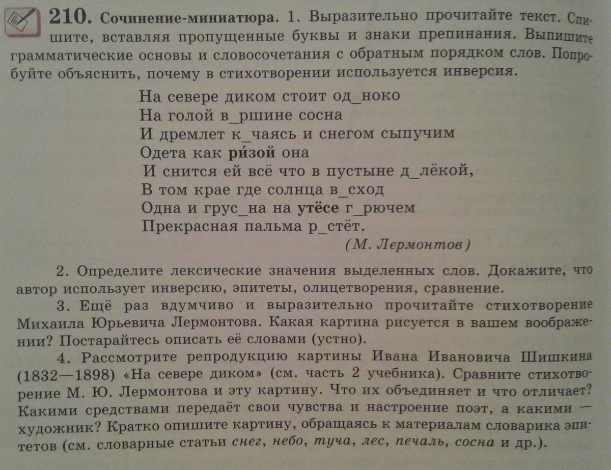 одиноко, вершине, качаясь, далёкой, восход, грустна, горючем, растёт