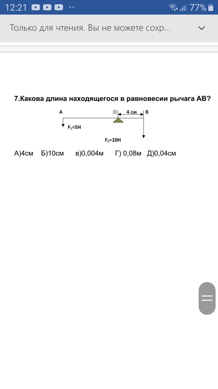 Какова длина находящегося в равновесии рычага AB? (Пожалуйста, с решением)