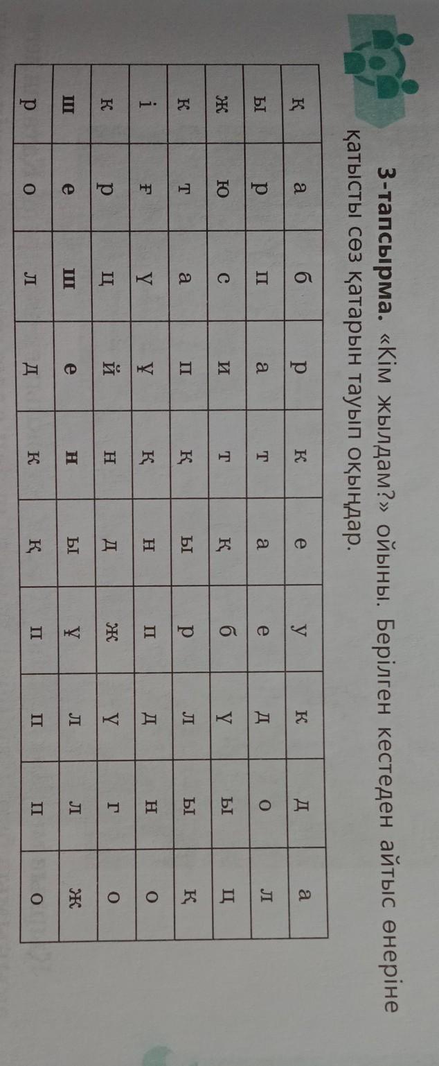 3-тапсырма. «Кім жылдам?» ойыны. Берілген кестеден айтыс өнеріне