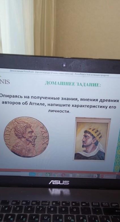 Цитата Иордана: "Он был горделив поступью, метал взоры туда и сюда и самими телодвижениями обнаруживал высоко вознесённое своё могущество. Любитель войны, сам он был умерен на руку, очень силён здравомыслием, доступен просящим и милостив к тем, кому однажды доверился. По внешнему виду низкорослый, с широкой грудью, с крупной головой и маленькими глазами, с редкой бородой, тронутый сединою, с приплюснутым носом, с отвратительным цветом [кожи], он являл все признаки своего происхождения"