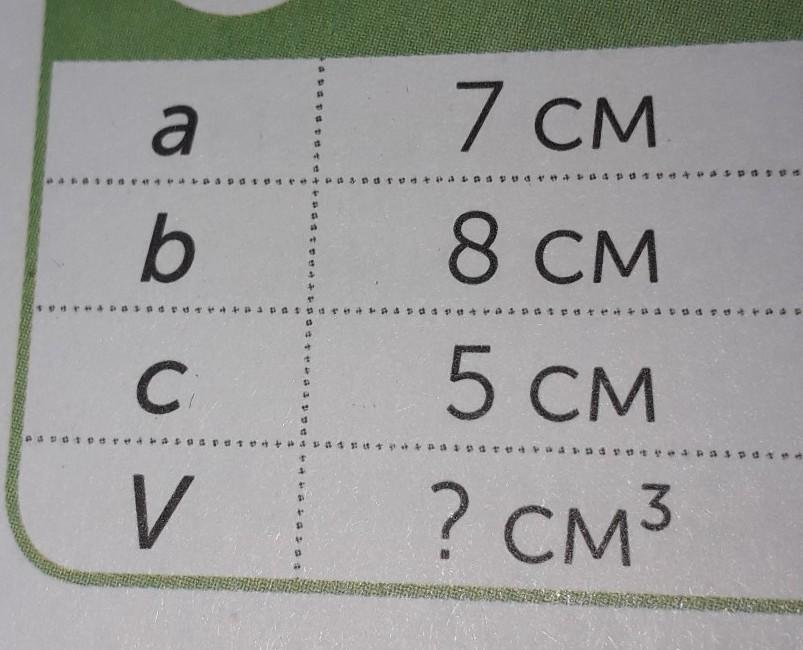 длина куба, 7 см ширина 8 высота 5 каков будет объем куба