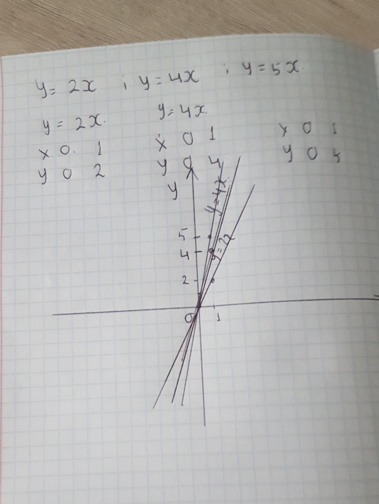 постройте в одной системе координат графики прямой пропорциональности 1)y=2x 2) y=4x 3) y=5x ответьте пожалуйста