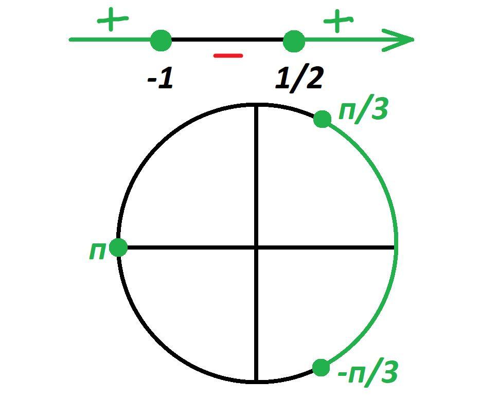 Дорешивая неравенство методом интервалов (картинка) получим: