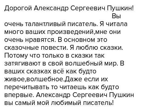 Помогите пожалуйста нам задали по литературному чтению написать письмо в прошлое "За что я бы поблагодарил великих русских писателей сказочников?" спасибо.
