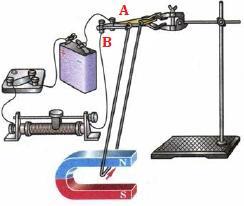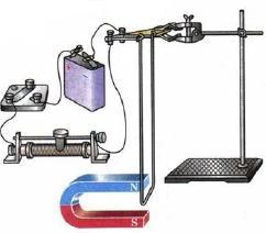 В результате проведённого опыта проводник с током начал двигаться в сторону магнита, то есть влево (рис. 2 ).
