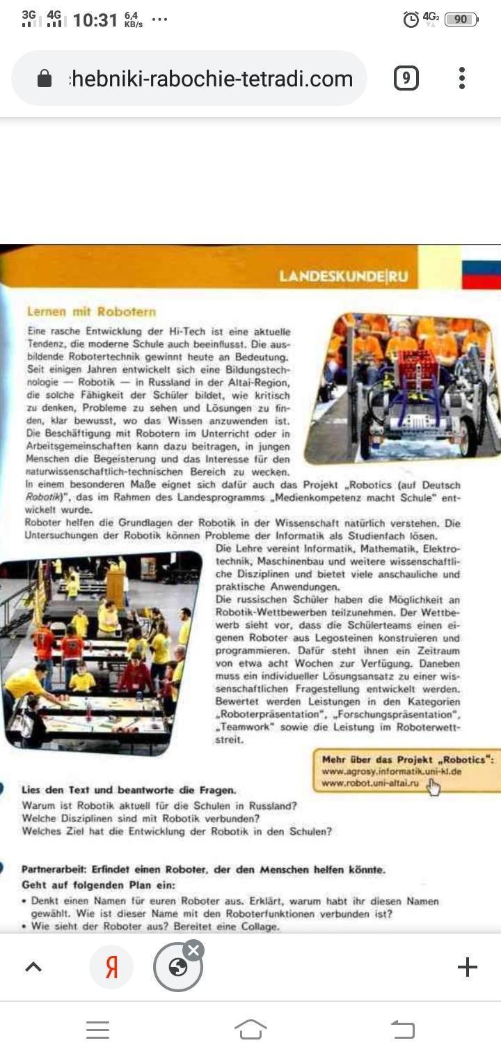 Прочитайте текст и ответьте на вопросы. Почему робототехника актуальна для школ в Руссфанде? Какие дисциплины связаны с робототехникой? Какова цель развития робототехники в школах? Партнерская работа: изобрести робота, который мог бы помочь людям. Следуйте приведенному ниже плану: