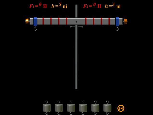 ⦁ Опыт 2. Подвесьте к левому плечу рычага 2 груза, к правому - 2 груза. Перемещая грузы, уравновесьте рычаг. Данные запишите в таблицу.