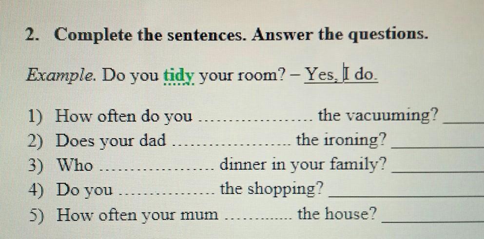 - Does your dad do the ironing? - No, he doesn't. (Yes, he does) - твой отец заниматься глажкой (гладит вещи утюгом)? - Нет. (Да).