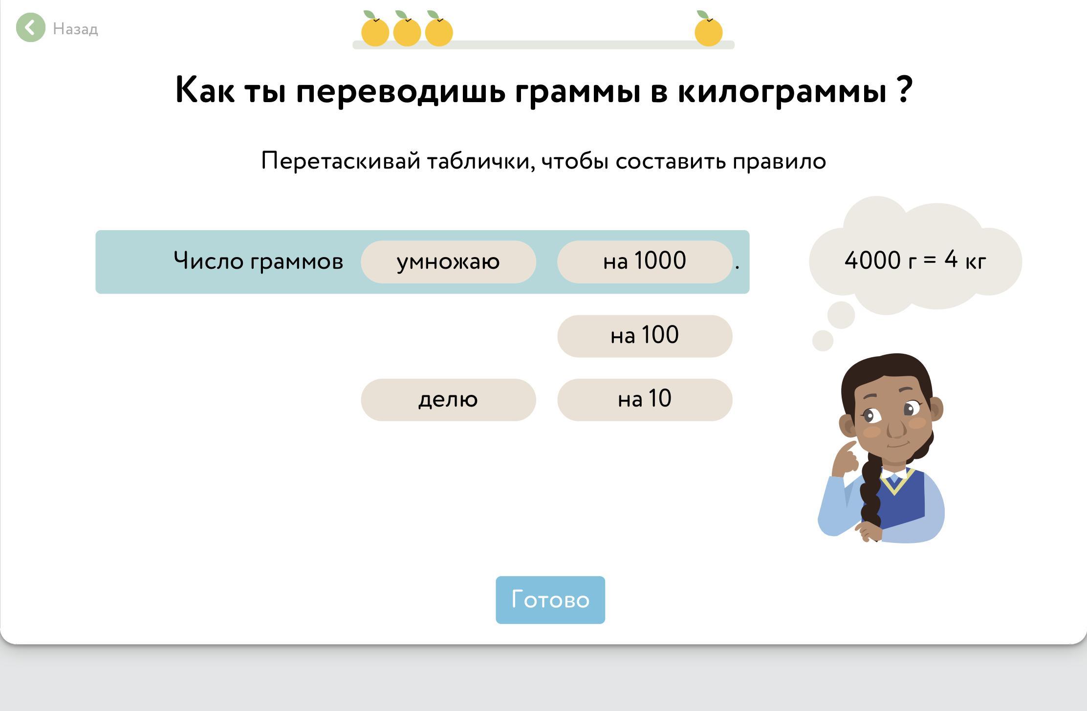 Если умножить то тоже выйдут граммы(Например:100г*1000=100000г, а если поделить , то 100г:1000=0.1 кг