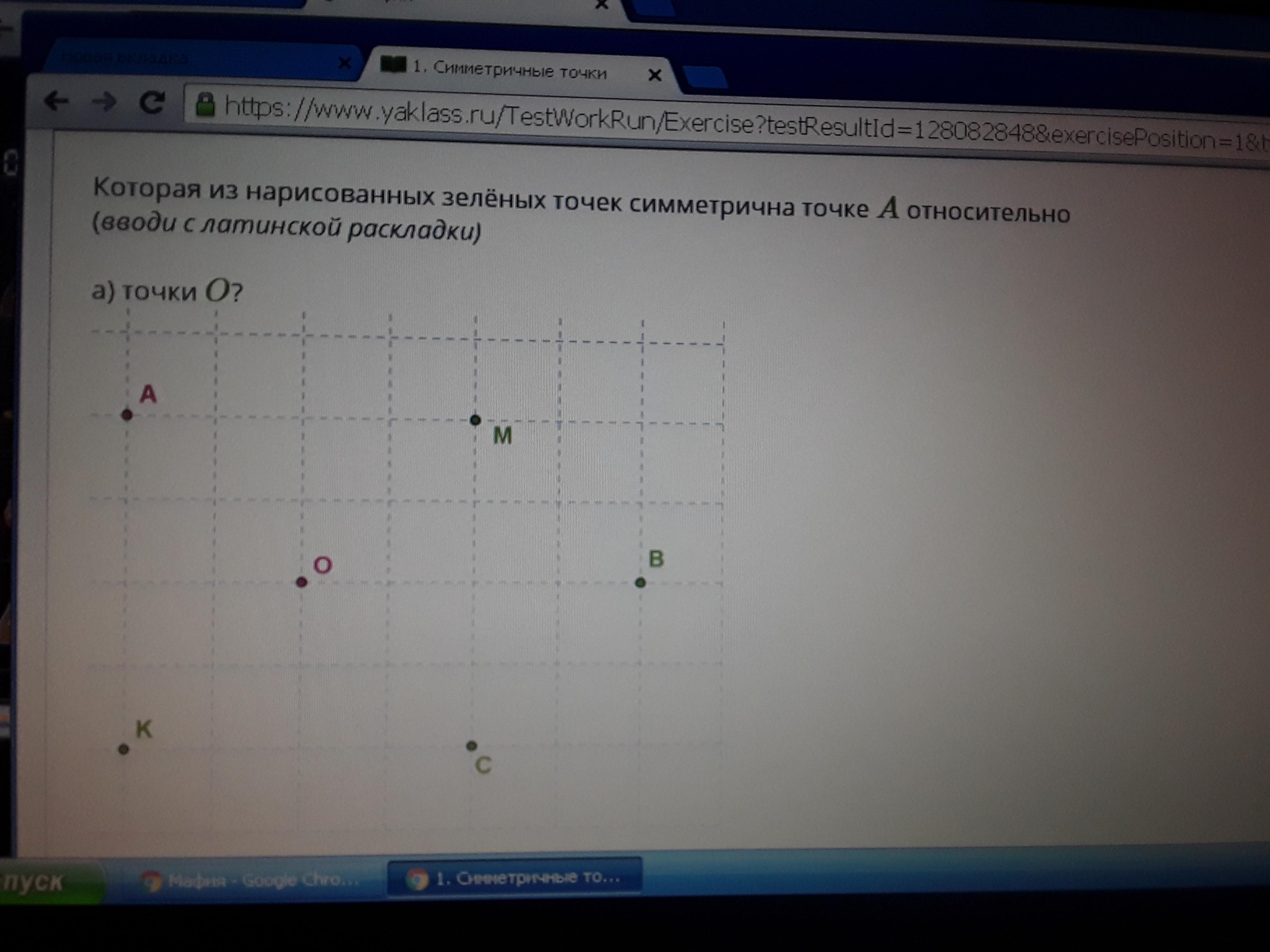 точка К симметрична точе А