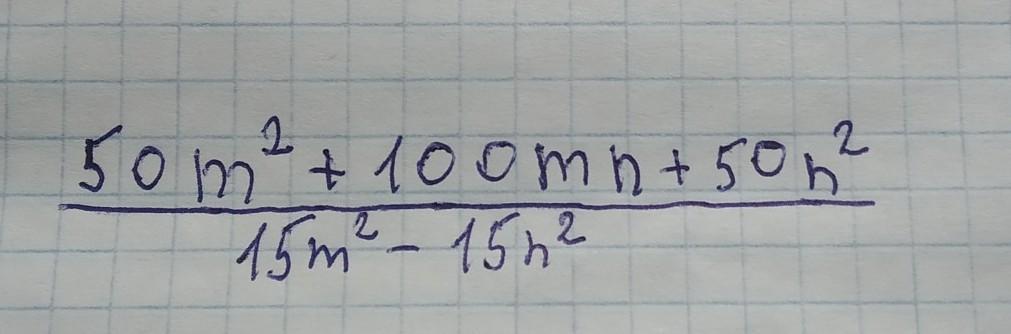 (50m²+100mn+50n²) / (15m²-15n²)=