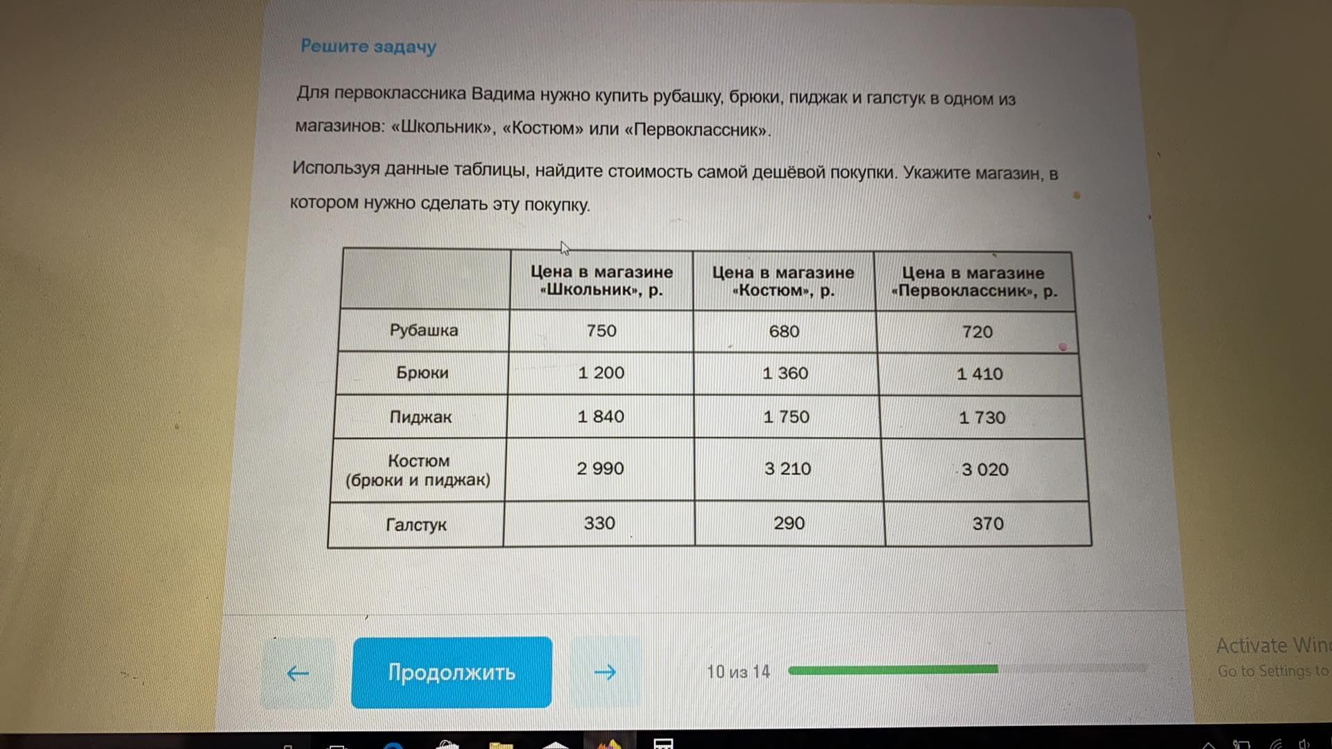 Используя данные таблицы, найдите стоимость самой дешёвой покупки. Укажите магазин, в котором нужно сделать эту покупку.