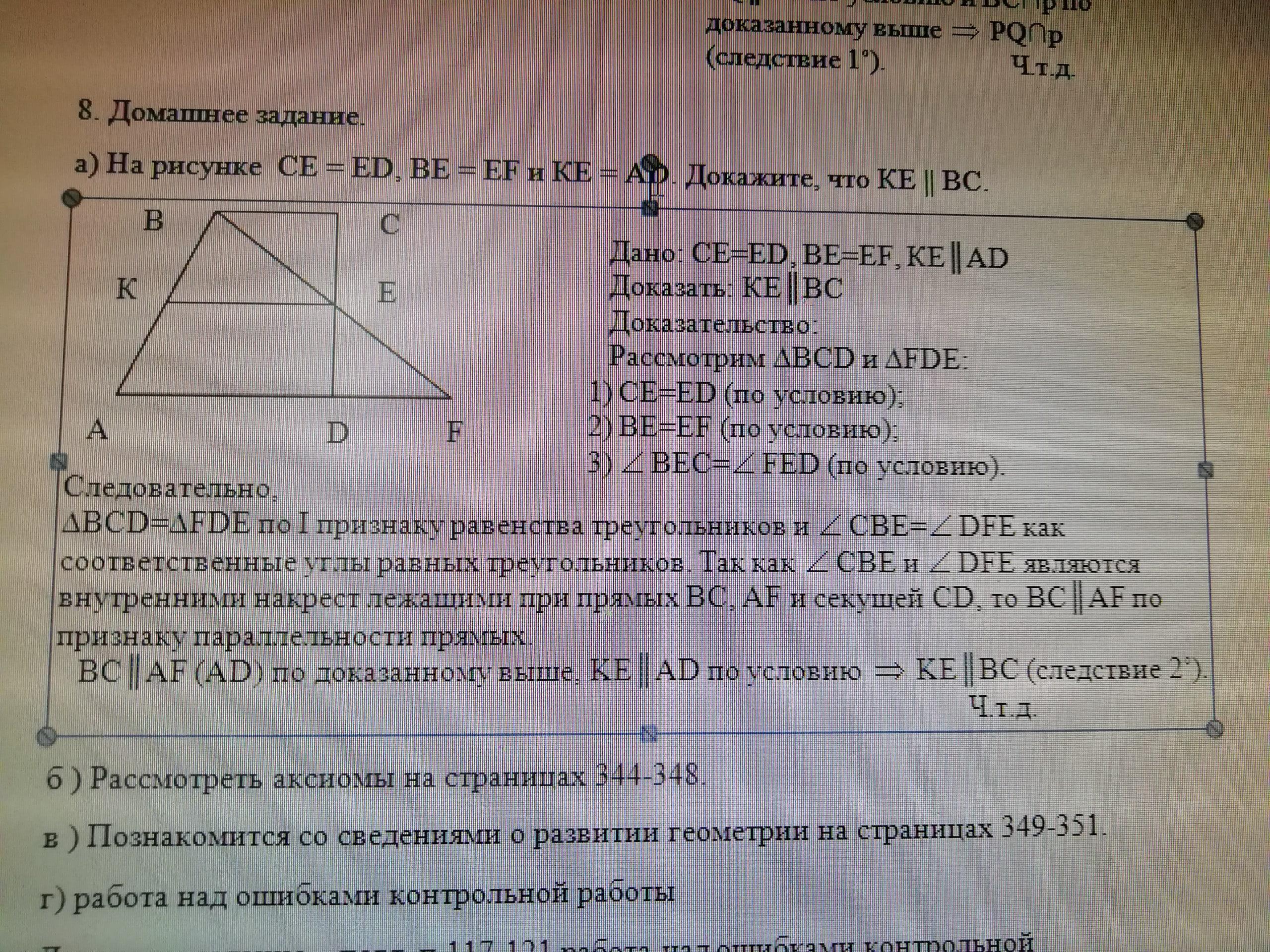 На рисунке СЕ = ED, ВЕ = EF и КЕ = AD. Докажите, что КЕ || ВС.