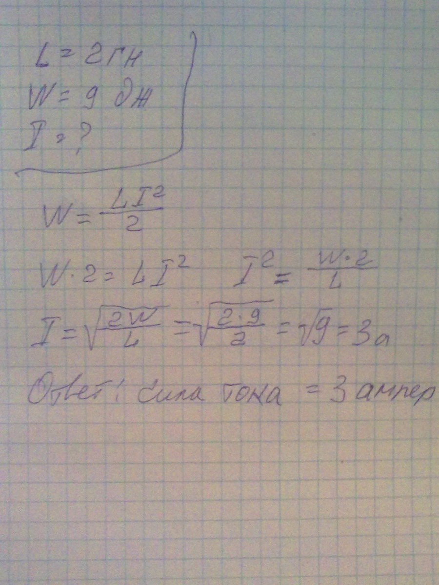 какой должна быть сила тока в обмотке дросселя индуктивностью 2 гн чтобы энергия поля оказалась равной 9 Дж?