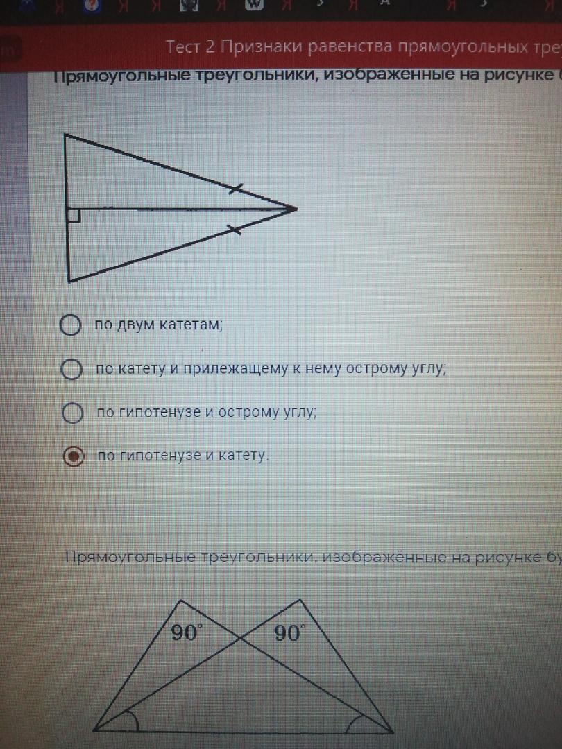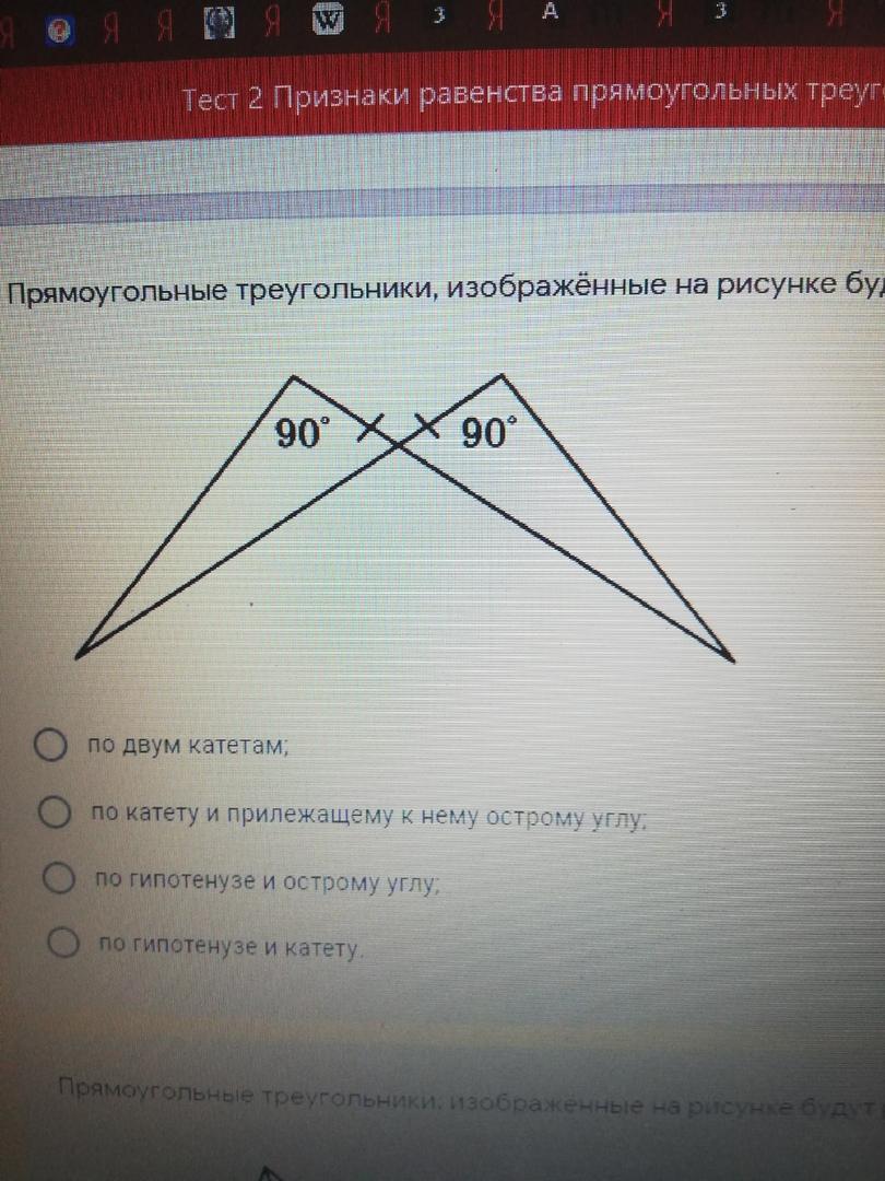 Прямоугольные треугольники, изображённые на рисунке будут равны: *