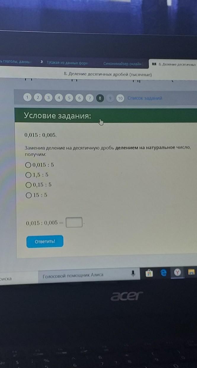 По идее 15:5=3 ведь если разделить 0.015:0 на 0.005 то получится так же 3
