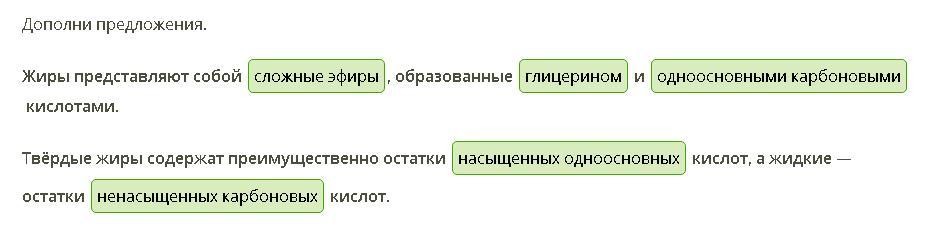 Твёрдые жиры содержат преимущественно остатки кислот, а жидкие — остатки кислот.