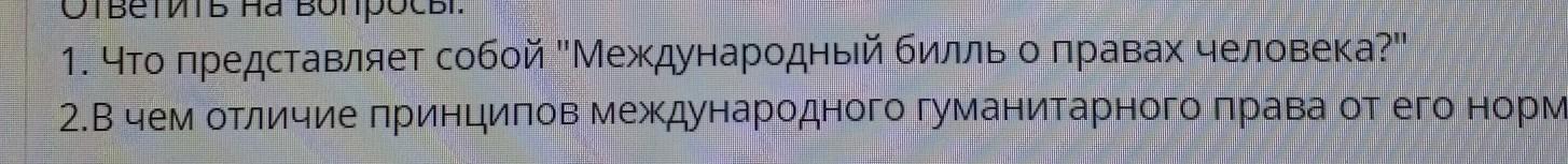 Ответ:Международный билль о правах человека — совокупность международных документов, содержащая Международный пакт об экономических, социальных и культурных правах, Международный пакт о гражданских и политических правах, Первый и Второй факультативный протокол к нему в совокупности с Всеобщей декларацией прав человека.