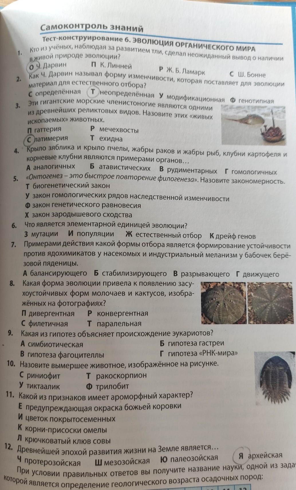 Самоконтроль знаний Тест конструирование 6. Эволюция органического мира​