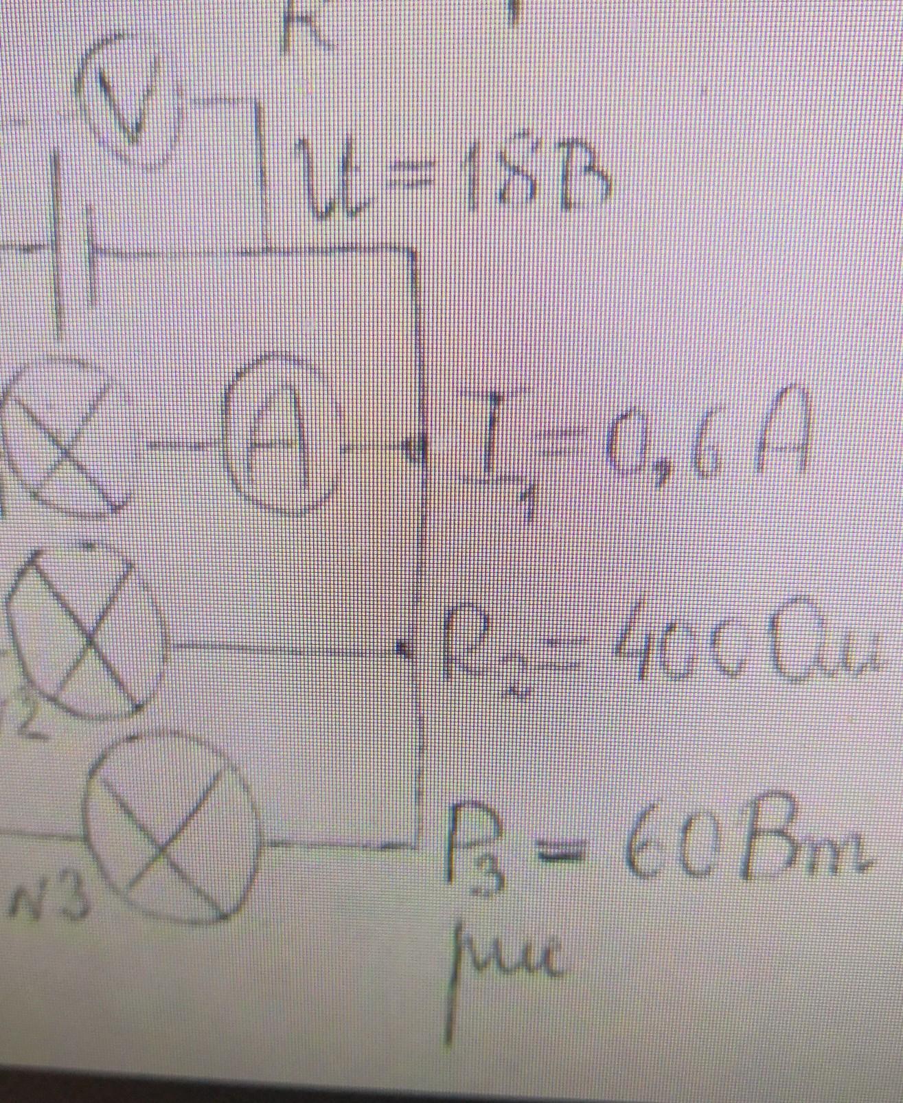 найдите сопротивление лампы 1 и мощность тока в ней ; силу тока и мощность в лампе 2 ; силу тока в лампе 3 и её сопротивление (см. рис.)
