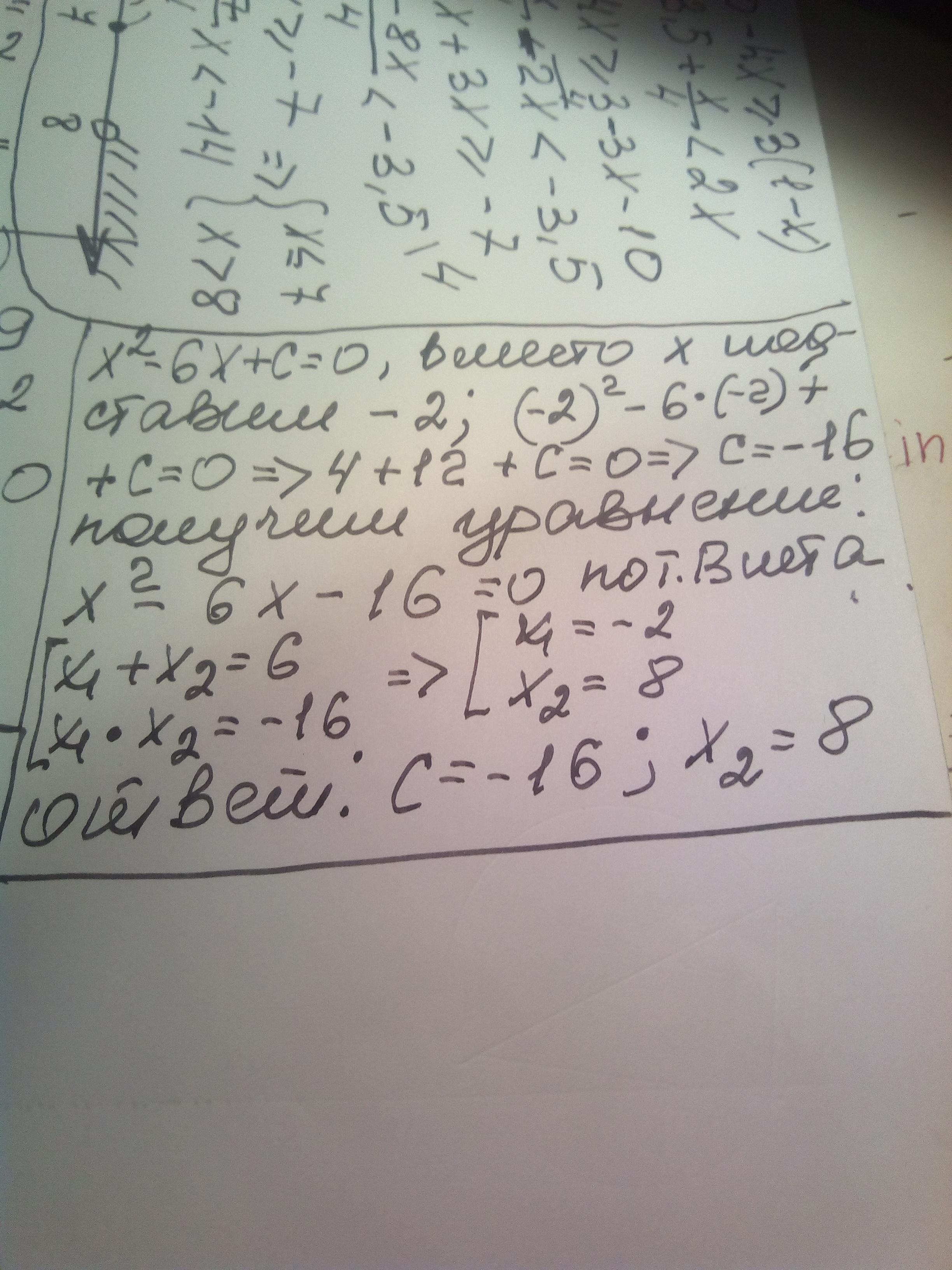 Один з коренів рівняння х2 - 6 х + с = 0 дорівнює -2. Знайдіть вільний член і другий корінь цього рівняння.