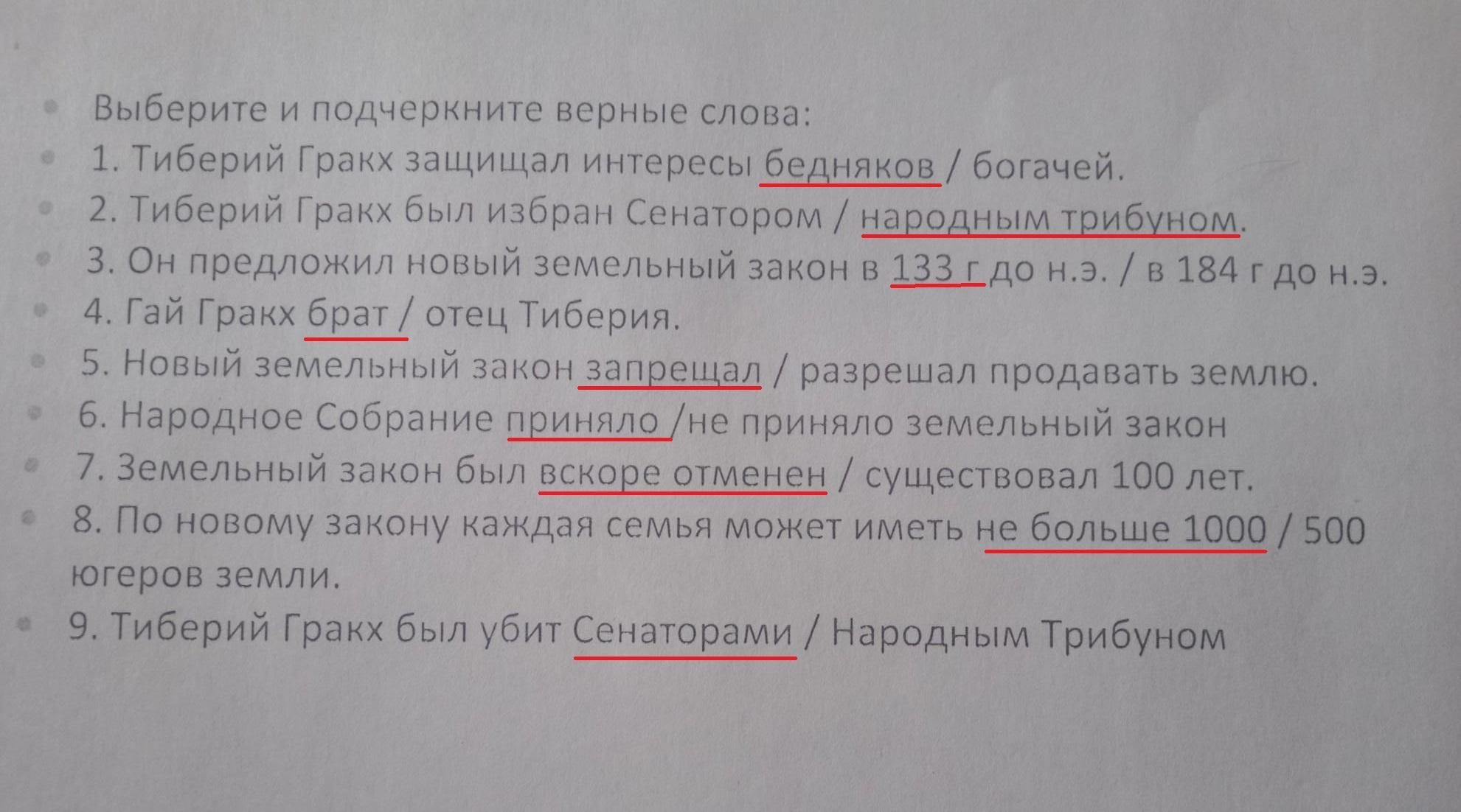 вопрос 9 некорректный, т.к. избиение устроили сенаторы, но удары Тиберию наносил трибун Публий Сатурей. Поэтому можно ответить и так, и так.