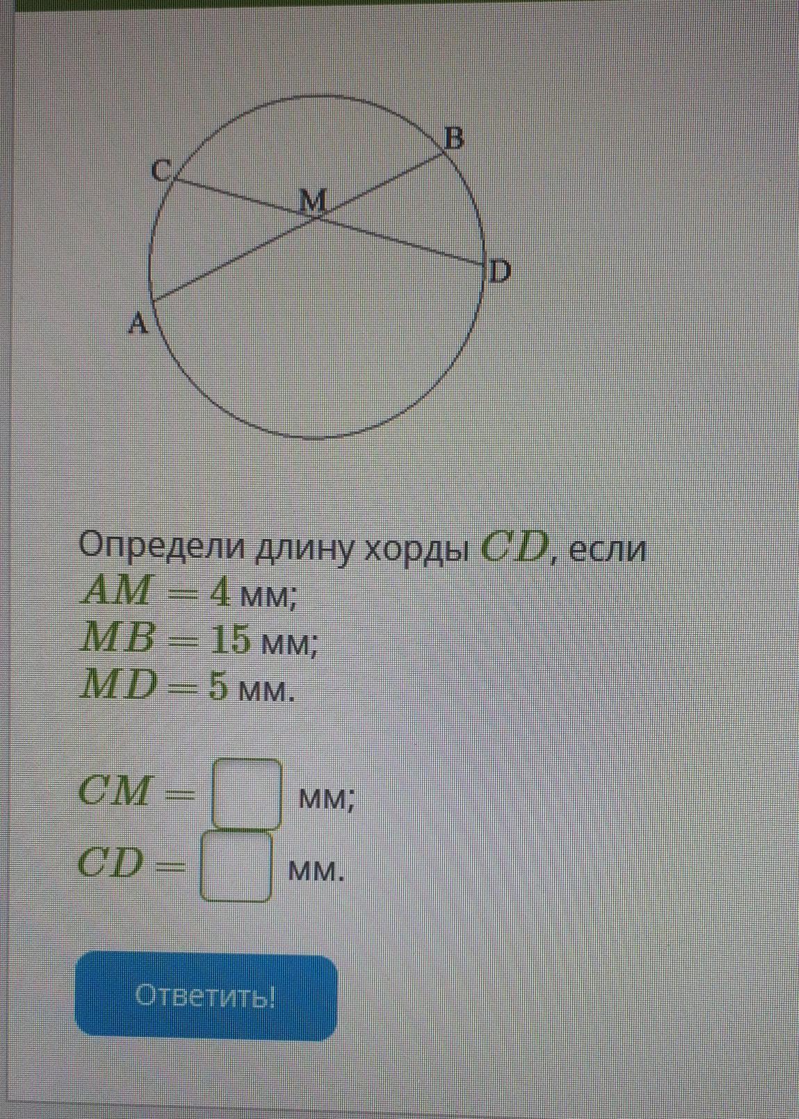 Определи длину хорды CD, если