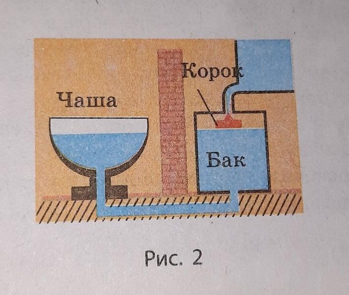 Ответ:Чаша та бак являють собою сполучені посудини,в яких рівень води буде на одному рівні. При вичерпуванні води з чаші, зменшується рівень в баці, що приводить до опускання корки.Він працює як клапан, що відкривається і закриває додаткову місткість з водою.При зменшенні рівня води в баці він відкривається і додаткова вода потрапить в бак,від чого корок підніметься і закриє додаткову місткість з водою
