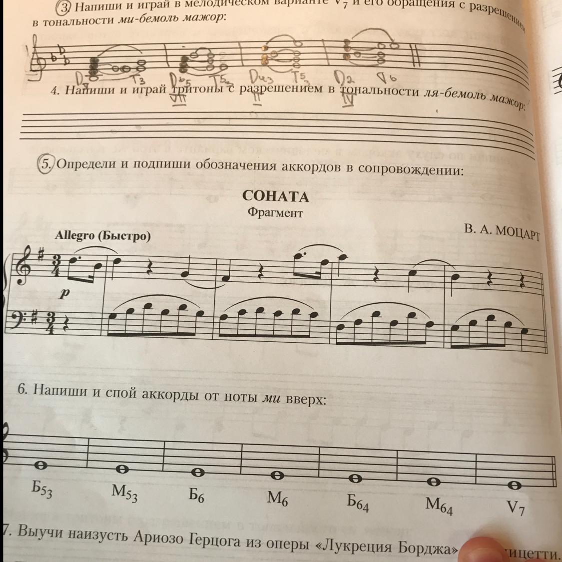 Дам 10 баллов Помогите пожалуйста Очень надо Определи и подпиши обозначения аккордов в сопровождении из фрагмента Сонаты Моцарта