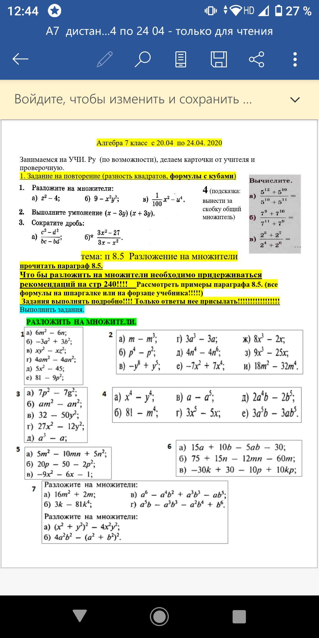 Е)3a⁵b-3ab⁵=3ab(a-b)(a+b)(a²+b²)