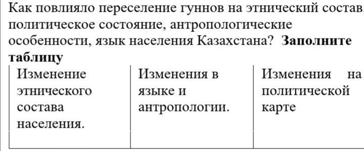 как повлияло переселение гуннов на этнический состав политическое состояние антропологические особенности язык населения Казахстана. зарание огромное спасибо