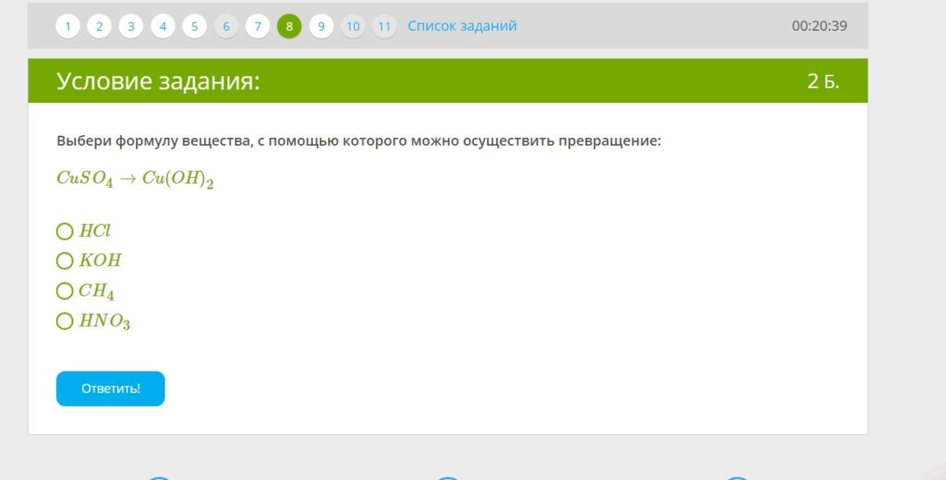 Выбери формулу вещества, с помощью которого можно осуществить превращение: