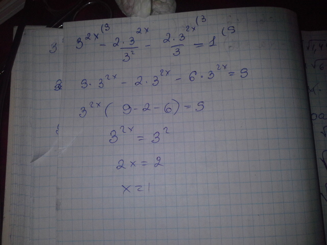 3(в степени 2х)-2*3(в степени 2х-2) - 2*3(2х-1)=1
