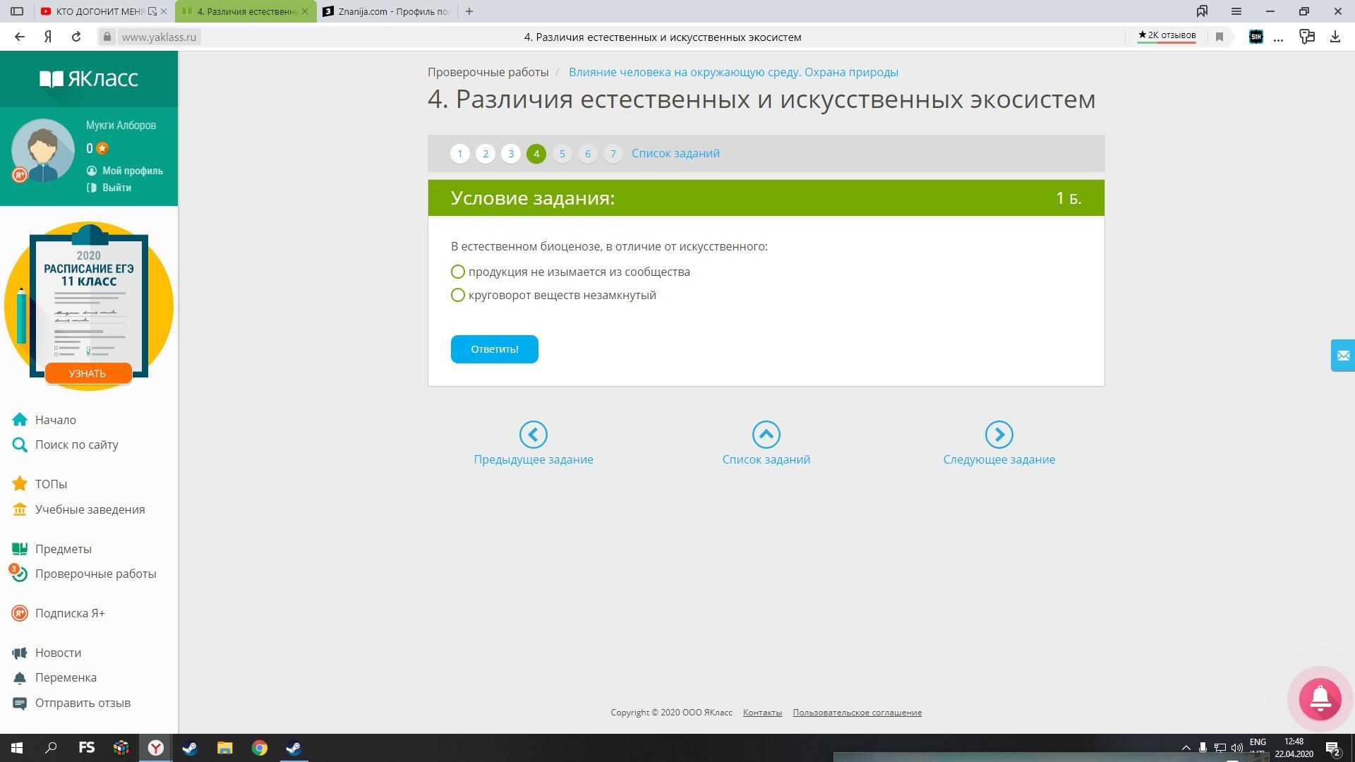 Объяснение: продукция не изымается из общества т.к. в искусственном точно незамкнутый круговорот веществ. так что первое верно