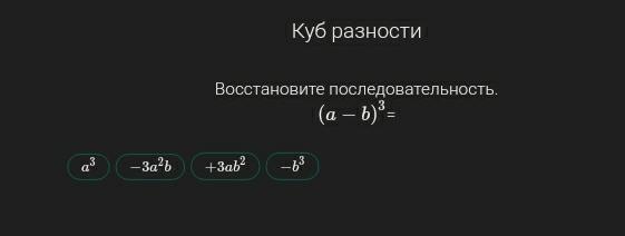 по формуле сокращенного умножения куб разности раскладывается как a³-3a²b+3ab²-b³
