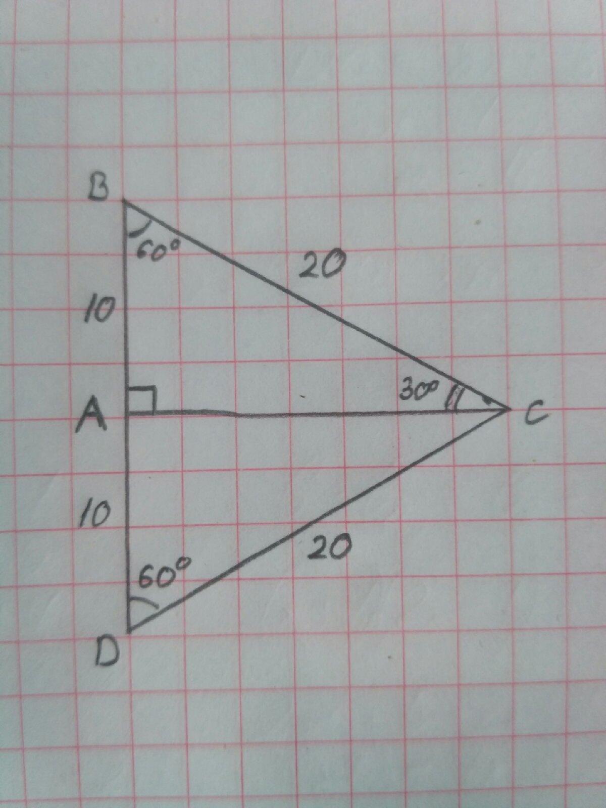 Тогда сторона AB = BD:2 = 20:2 = 10см