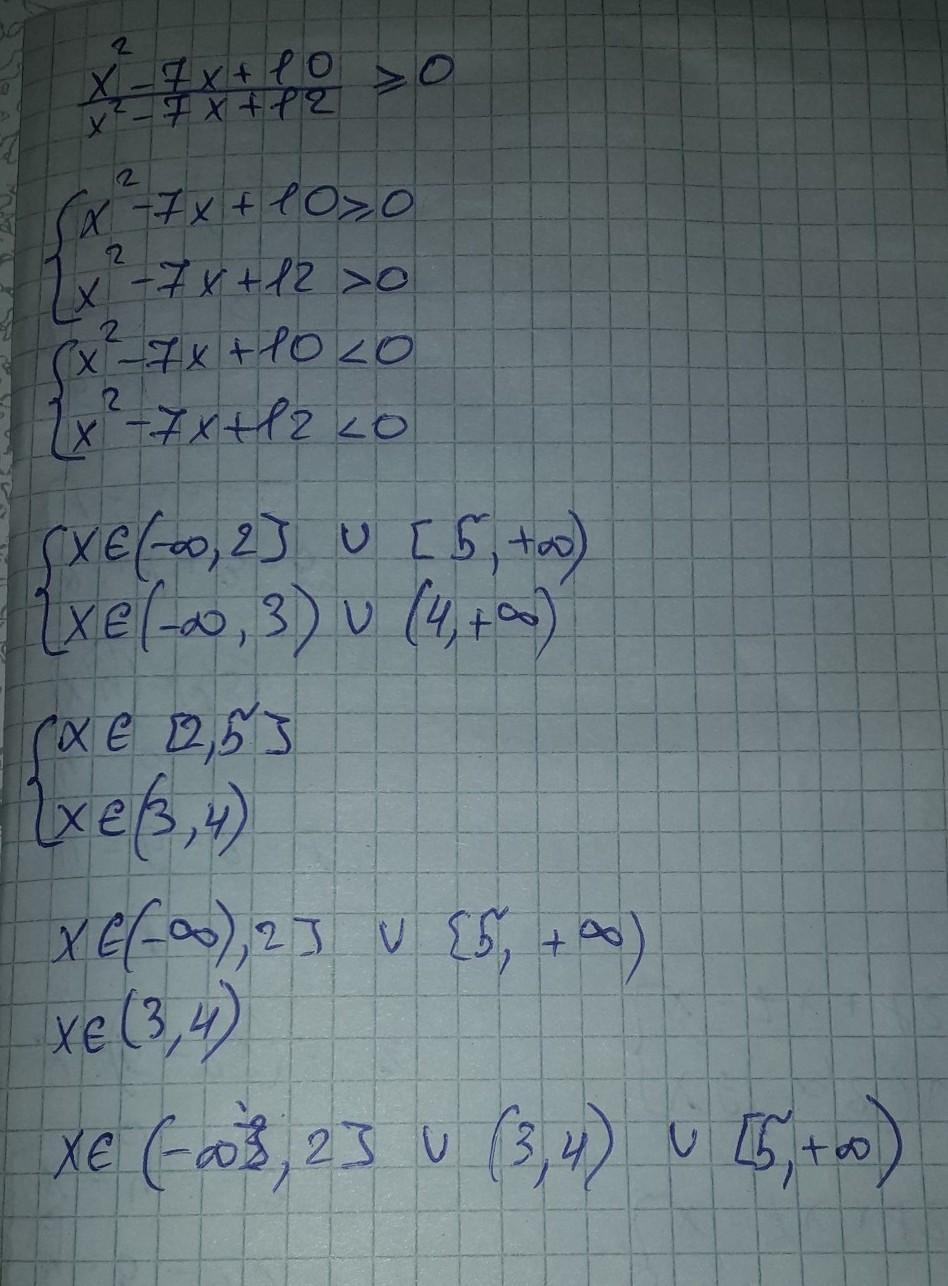 Реши неравенство методом интервалов, предварительно разложив на множители квадратные трехчлены в числителе и знаменателе дроби: