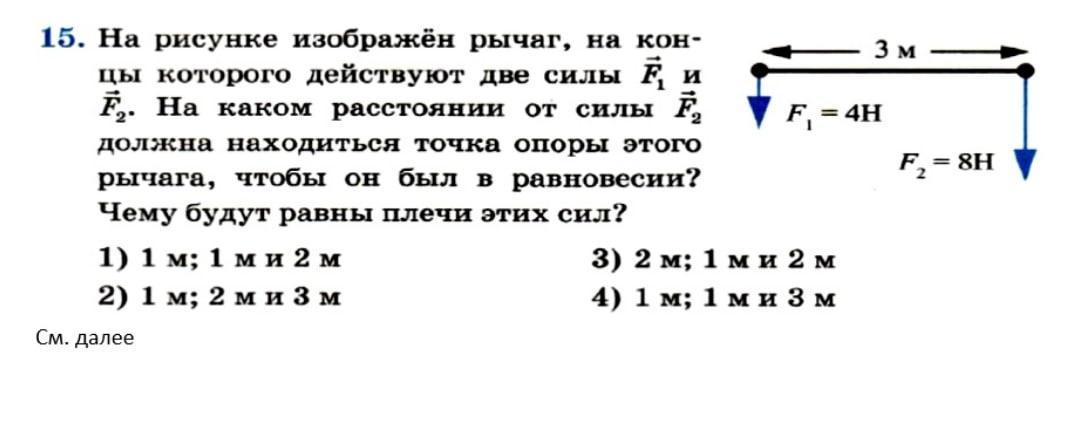 На рисунке изображен рычаг, на концы которого действуют две силы F1 и F2. На каком расстоянии от силы F2 должна находиться точка опоры этого рычага, чтобы он был в равновесии? Чему будут равны плечи этих сил? ОТВЕТ С ПОЯСНЕНИЕМ