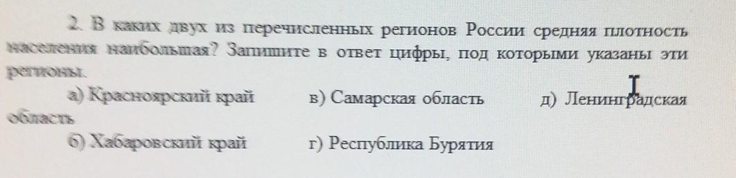 в каких трех из перечисленных регионов России средняя плотность населения наибольшая