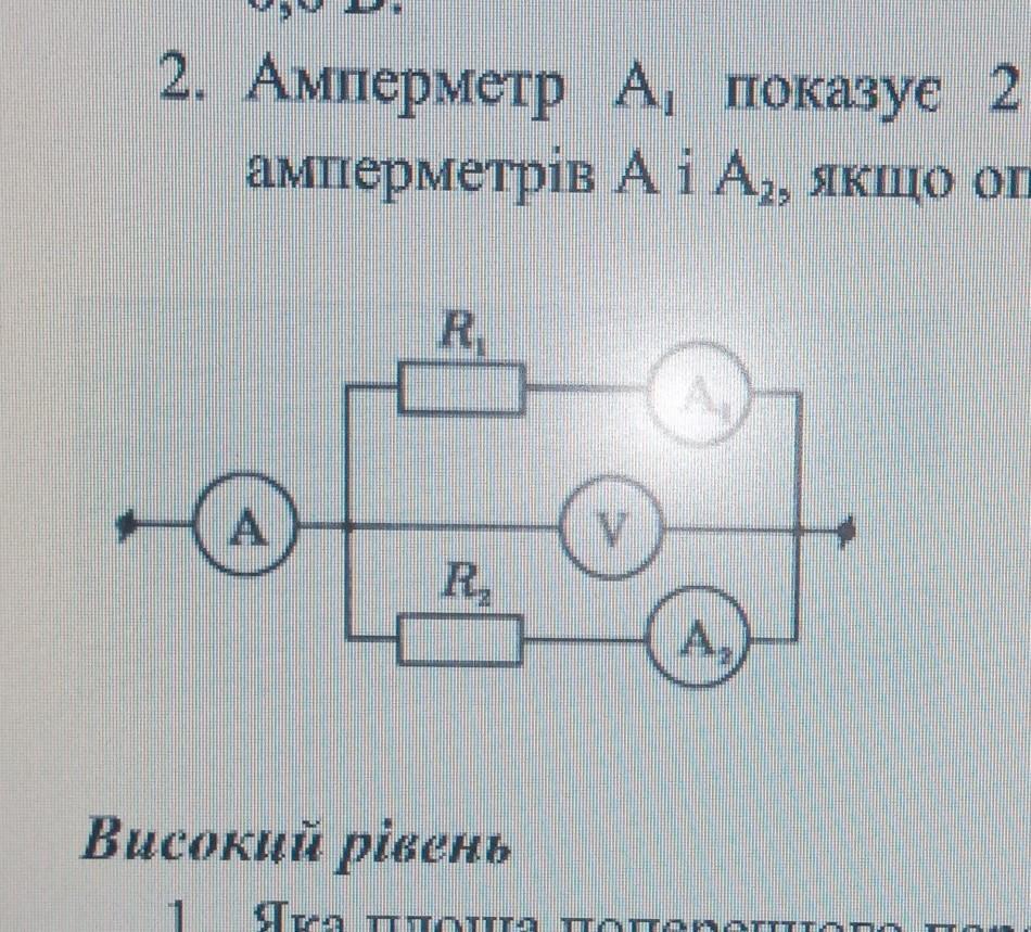2. Амперметр А, показує 2 А. Визначити показання вольтметра та