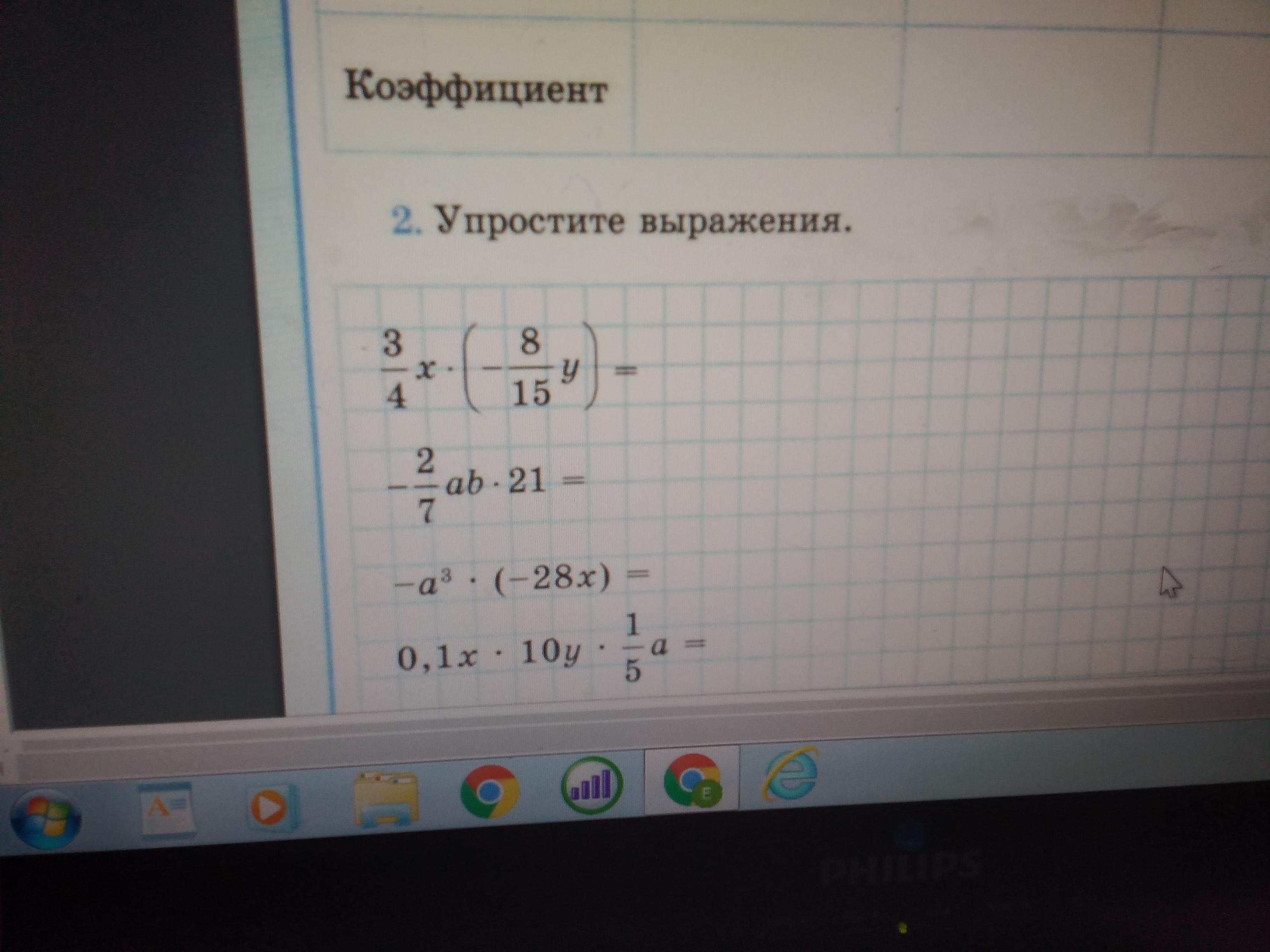 1)3/4x*(-8/15y)=(3/4*(-8/15))*(x*y)=(-(3/4*8/15))*xy= -2/5xy