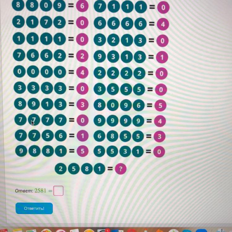 здесь мы смотрим на то,сколько кружков в каждом числе. Например: в первом числе (8809) у нас две восьмёрки это даёт 4 круга,+ 0 значит ещё 1 круг,+9 и снова один круг.