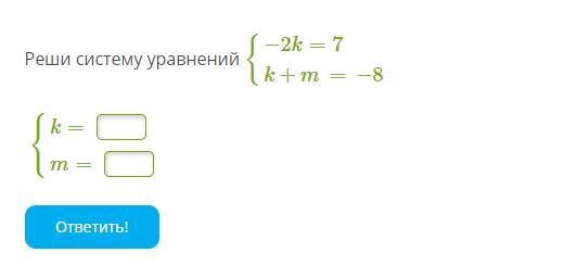 Вычислим значение k в первом уравнении, подставим значение во второе уравнение и вычислим m:
