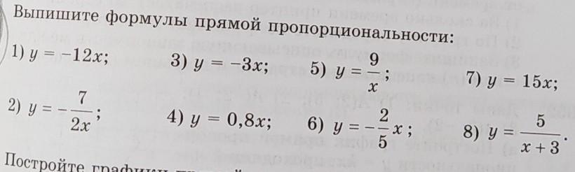 1) у = - 12 х 3) у = -3х 2 4) у = 0,8 х 7) у =15х 8) у = 2х 3