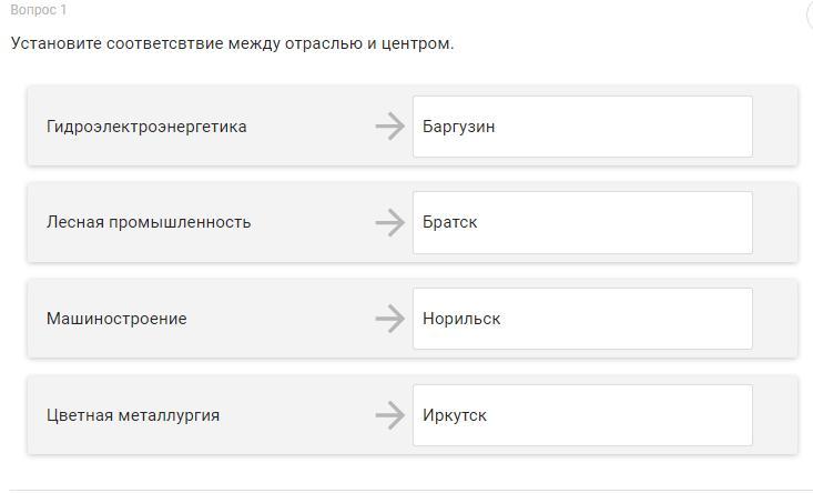 Вопрос 2 Выберите ВЕРНЫЕ утверждения о хозяйстве Восточной Сибири.
