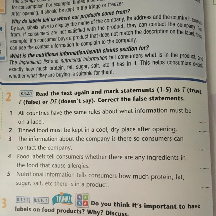 Read the text again an mark statements (1-5) as T(true), F(False) or Ds( doesn’t say) . Correct the false statements. (2 задание помогите пожалуйста)!!!